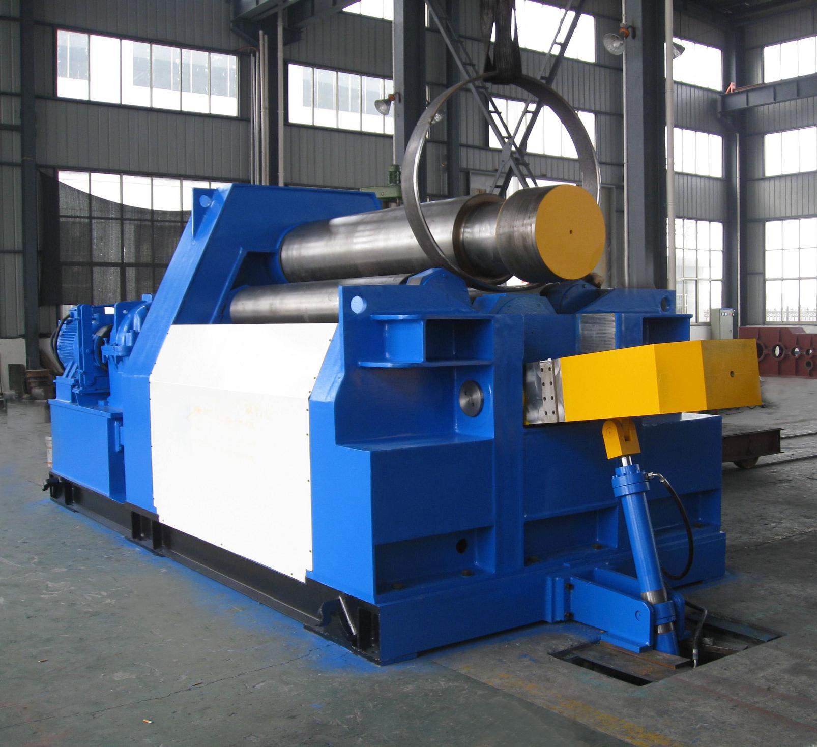 四輥卷板機可以不借助其它設備模具,直接預彎板材端部,它可以不要板材調頭,而卷成工件。這樣不僅提高了效率,保證了工件質量,而且工藝簡單,操作方便,減輕工人的勞動強度。