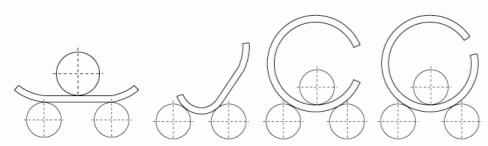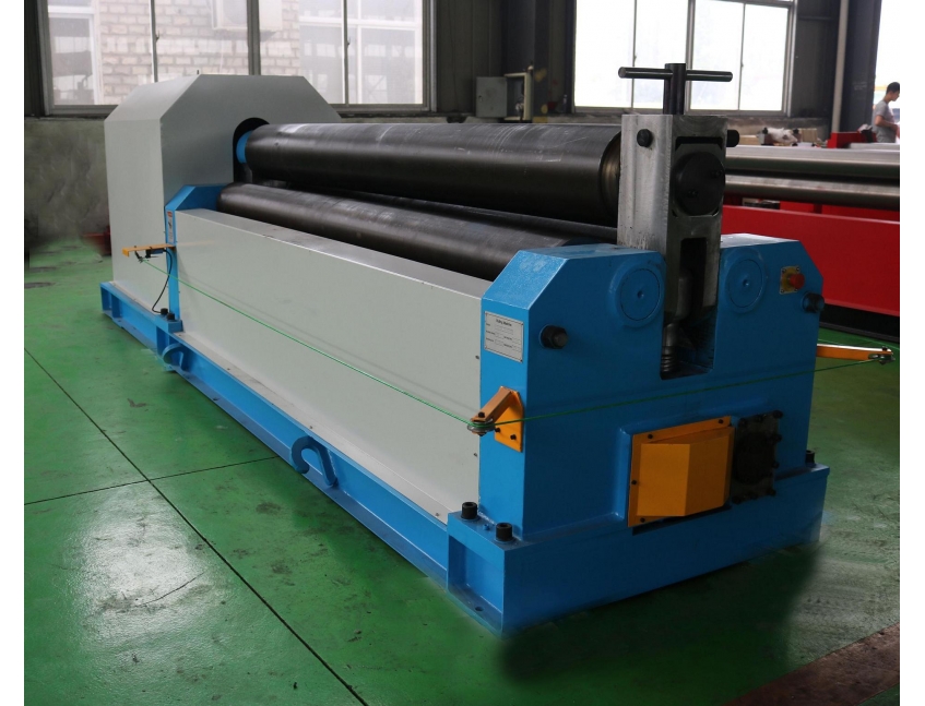 W11對稱彎板機是全機械式三彎板機。 三個滾筒全部固定,像金字塔一樣放置。